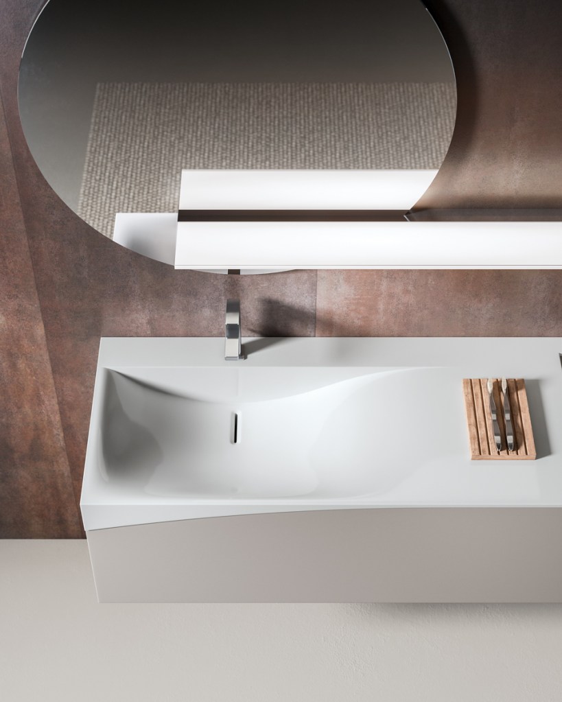 La innovación y la esencialidad del diseño de nuestros muebles de baño se funden en la visión de este entorno que no se limita solo a la dimensión funcional.